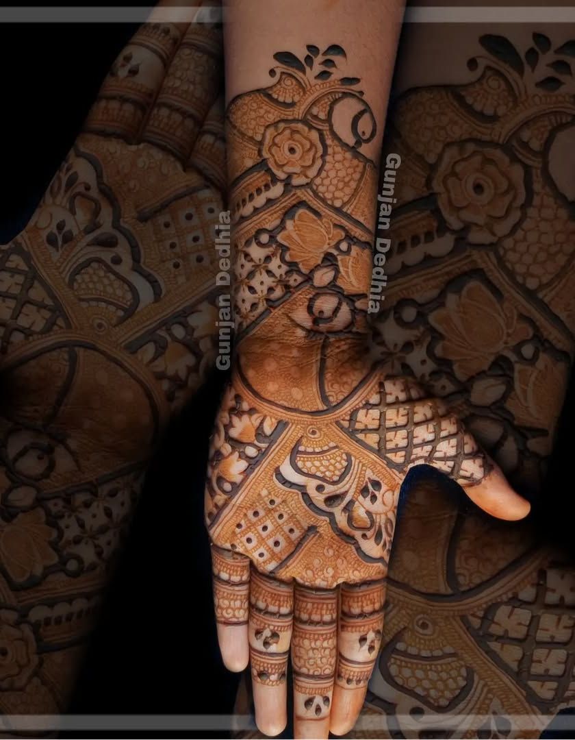 Explore my portfolio of timeless mehendi designs featuring elegant floral patterns, graceful peacocks, and intricate geometric work. These classic styles are perfect for any occasion, offering a blend of tradition and beauty.