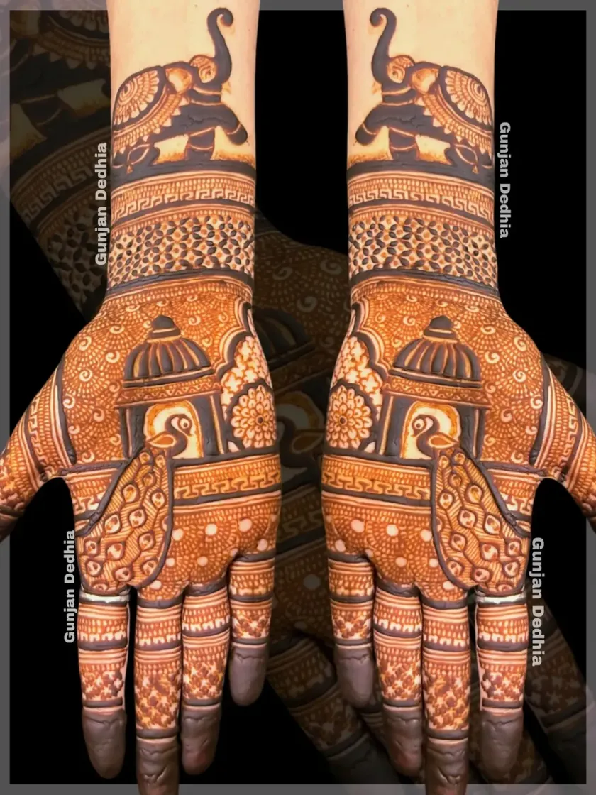 For the love of classic beauty, this collection features timeless Indian mehendi art. These designs are filled with traditional motifs like majestic elephants, graceful peacocks, royal palaces, and detailed geometric patterns for a rich and full look.