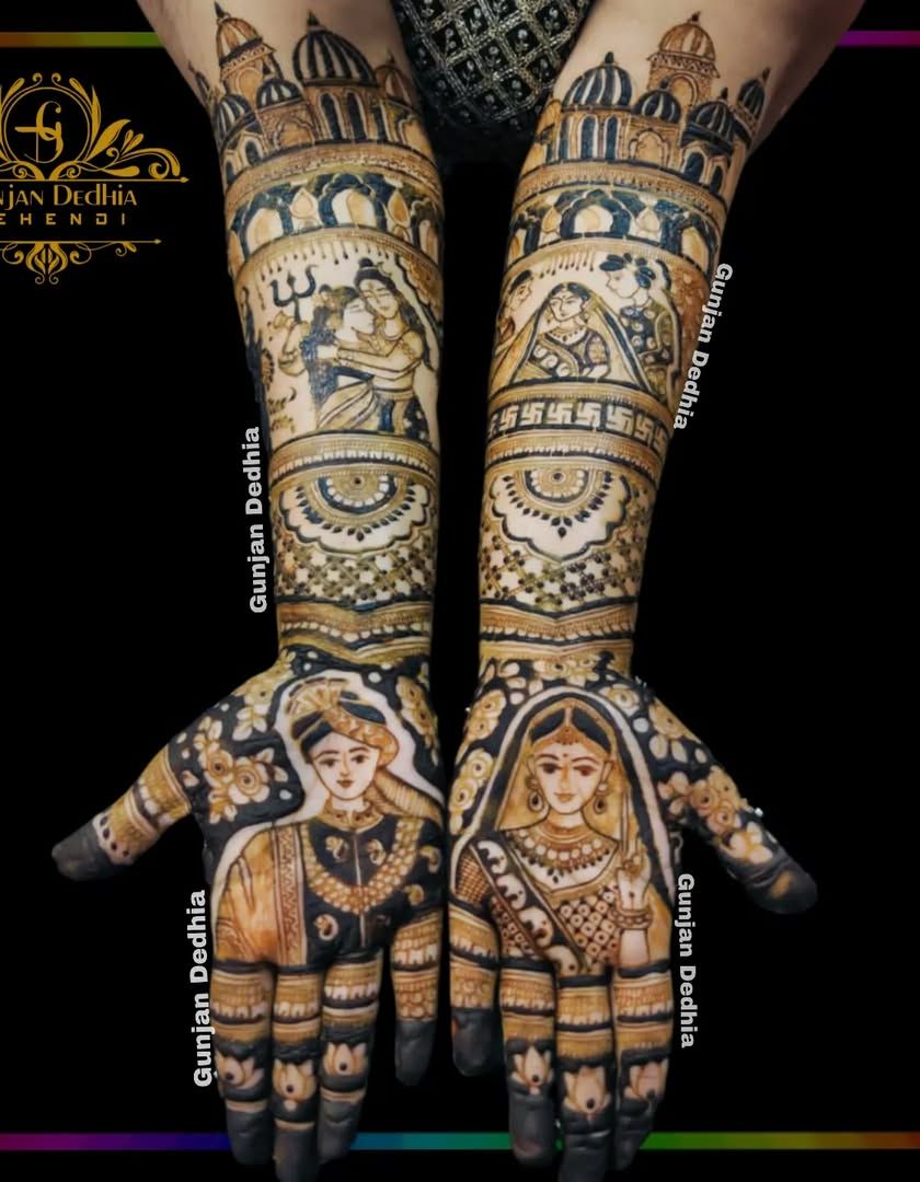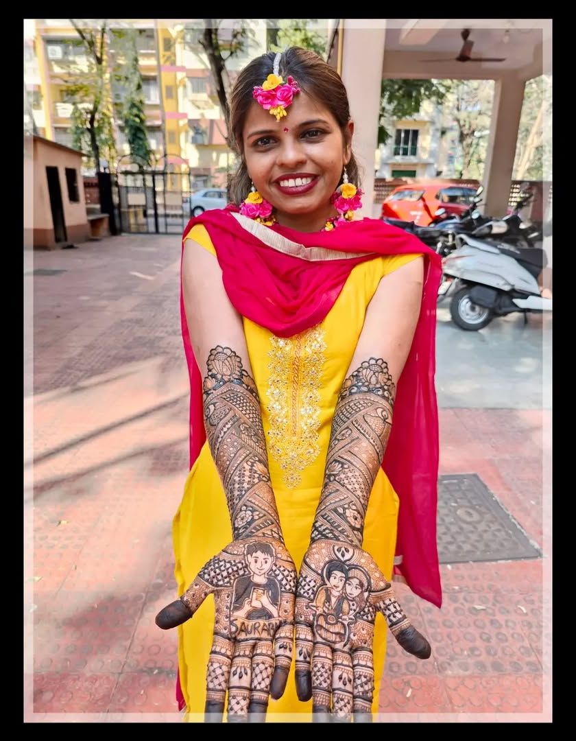 Your mehendi should be as unique as your love story. I specialize in creating personalized bridal designs that weave in your portraits, initials, special dates, or even themes from your journey together, like travel or spiritual beliefs.