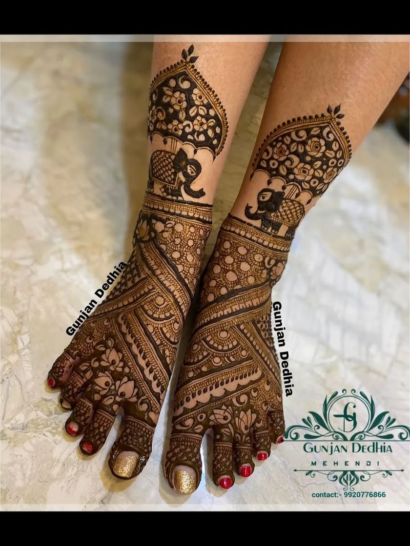 Complete your bridal look with stunning mehendi for your feet. I create designs that range from simple and elegant trails to full coverage patterns that match the art on your hands, ensuring you are adorned from head to toe.