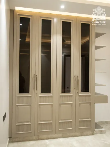 We build modular wardrobes and storage in our factory using HDHMR boards and robotic PU paint for precise fit, termite resistance, and long-lasting finish, with custom options for every home.