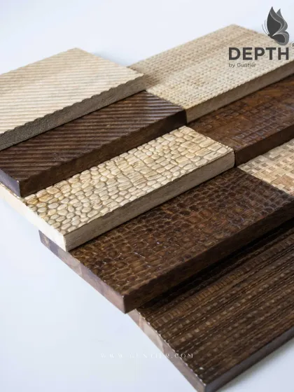 We make textured veneer panels with real wood and deep grain you can feel, pressed on plywood for moisture resistance and durability, with custom designs and large formats for feature walls, furniture, and doors.