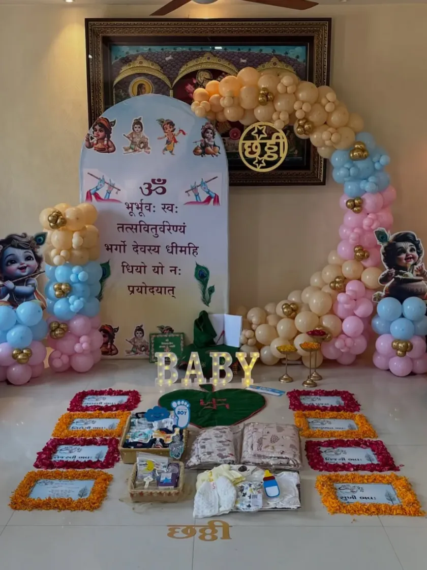 We respect and honor your cultural traditions by creating thoughtful decorations for events like Naamkaran, Chhathi, or Annaprashan. We can incorporate religious motifs, mantras, and traditional color schemes to create a blessed atmosphere for your baby's milestone.