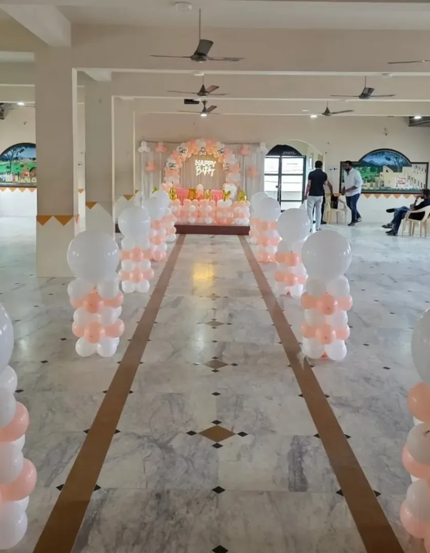 We don't just decorate a corner, we transform your entire space. This gallery shows how we create an immersive experience with decorated entrances, pathways, and full room setups with ceiling balloons and themed elements.
