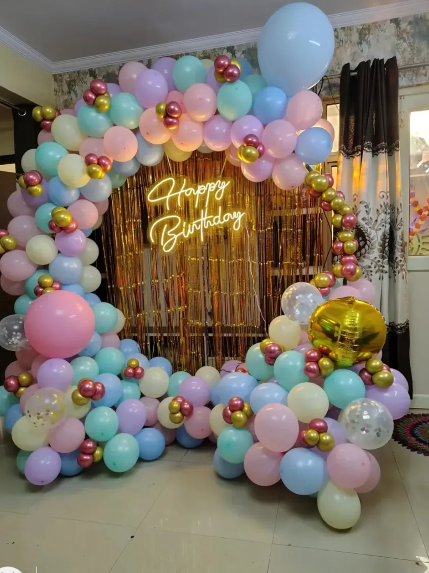 You don't always need a massive setup to make a birthday feel special. I also offer simpler, budget-friendly decorations for your home, including balloon arches, foil banners, and balloons on the ceiling. These are perfect for creating a festive atmosphere for a family celebration, and I can often get it done on the same day.