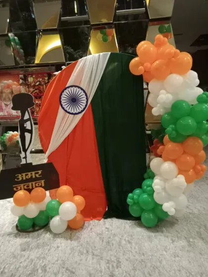 - For national holidays, I can sort out tricolor balloon arches, pillars, and thematic cutouts like Amar Jawan Jyoti or kite hangings.