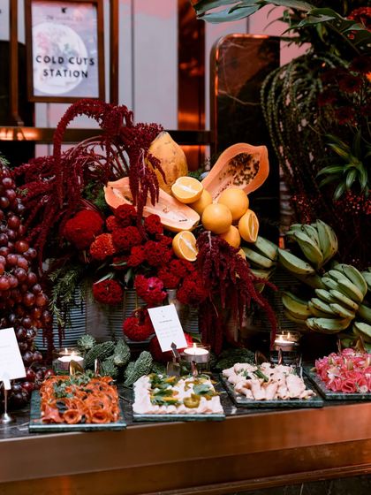 I design custom grazing tables and food displays with fruits, cheese, florals, and decor to make them the main highlight of your event, working with your caterer for the food.