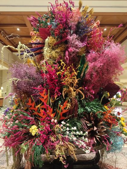 I design and build large-scale custom floral installations for hotels, events, and weddings, using bold foliage and unique elements to transform spaces based on your brief.