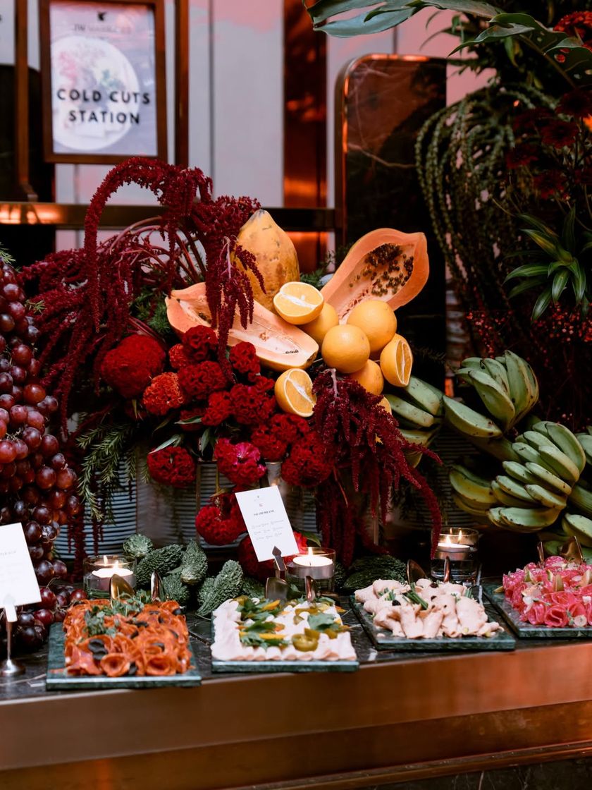 This is where I transform food into an immersive experience. Each table is a custom designed landscape of flavors and textures, featuring artisanal cheeses, cold cuts, fresh fruits, and vegetables, all woven together with lush florals and foliage to become the stunning centerpiece of your event.