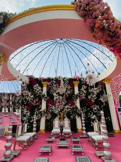 The Vidhi Mandap is the heart of a wedding, a sacred space where two stories merge. I design each mandap as a unique sanctuary that reflects the couple's journey. This collection showcases a variety of styles, from grand floral domes and regal red-and-gold structures blessed by Shreenathji, to classic white-and-green elegance set against the open sky.