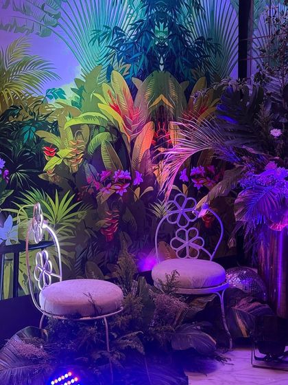 For clients who want to transport their guests to another world, I design fully immersive themed events. This is where storytelling through design truly comes to life. This collection includes a walk on the wild side with a jungle paradise, a journey back in time to a retro 80s disco, and a mystical Sufi night under the stars.
