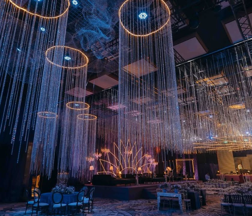 The Sangeet and Reception are all about celebration, energy, and making a statement. My designs for these nights focus on creating an immersive atmosphere using dramatic lighting, grand installations, and unique thematic elements. Whether it's a celestial sky full of stars, a high-energy retro disco, or a sophisticated lounge, I transform spaces to tell a story of joy and glamour.