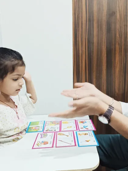 We use a variety of tools like picture cards and reading exercises to expand vocabulary and improve comprehension. These activities help children move from single words to forming sentences and understanding instructions.