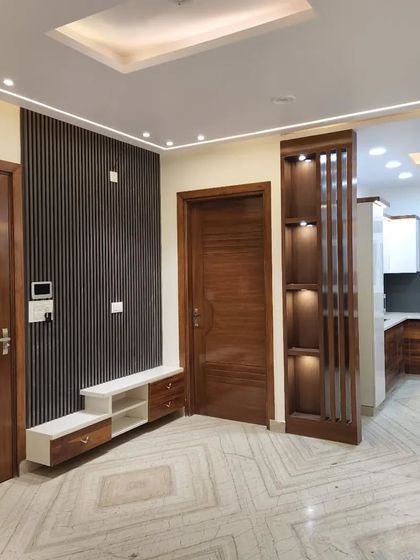 We transform homes through comprehensive interior design services, specializing in modern aesthetics with grey paneling, wooden textures, and marble-like surfaces. Our expertise includes custom furniture design and installation of wardrobes, TV units, and kitchen cabinetry.