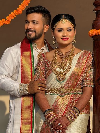 Bridal hairstyling & saree draping - I do South Indian bridal hairstyles, intricate braid styling, and signature saree draping for weddings.