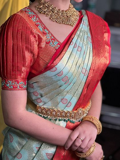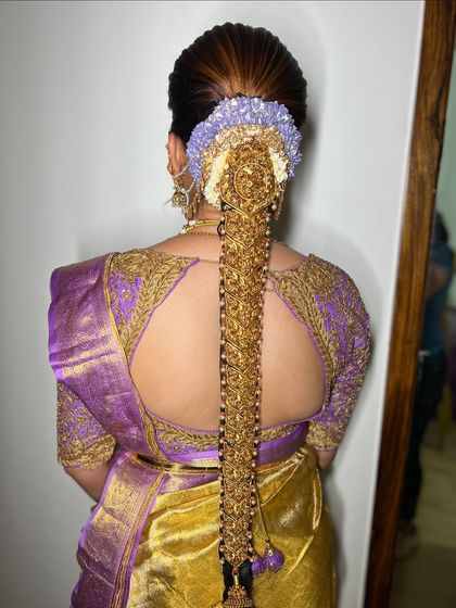 Bridal hairstyling & saree draping - I do South Indian bridal hairstyles, intricate braid styling, and signature saree draping for weddings.