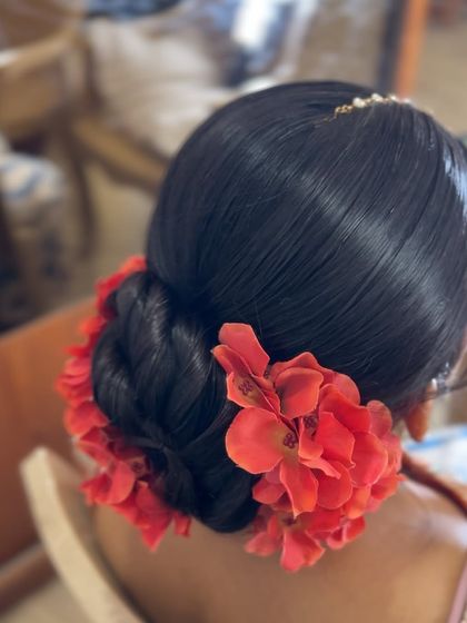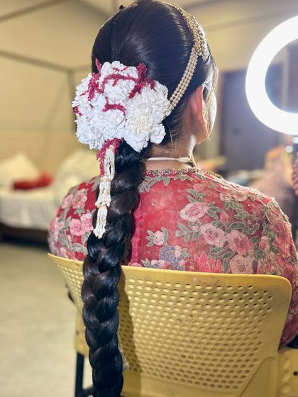 - If you want fresh flower hair accessories for brides, I’ll weave in gajra, roses, or even temple jewellery, making sure every detail sits perfect aagi.