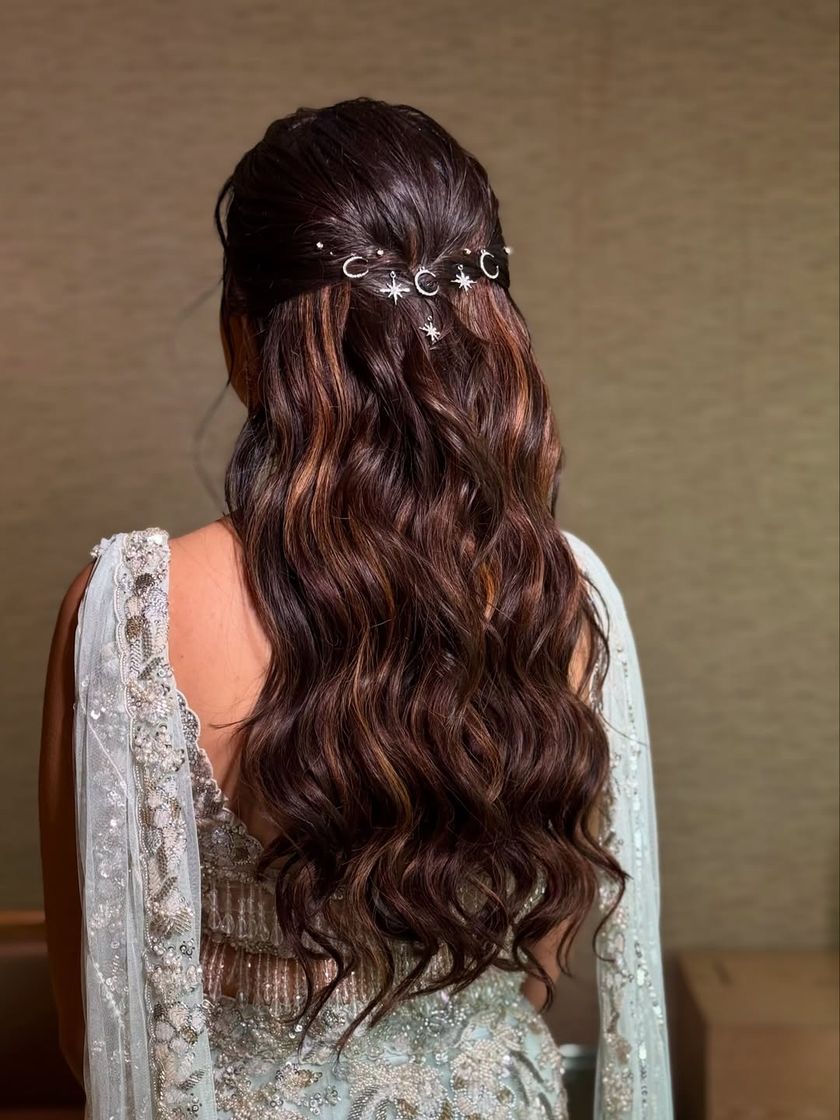 This is my most requested category, perfect for brides who want to showcase their hair's length and volume for events like the engagement, sangeet, or reception. I create everything from soft, cascading waves to voluminous Hollywood curls, often in half-up styles that beautifully frame the face while staying secure for all the festivities.