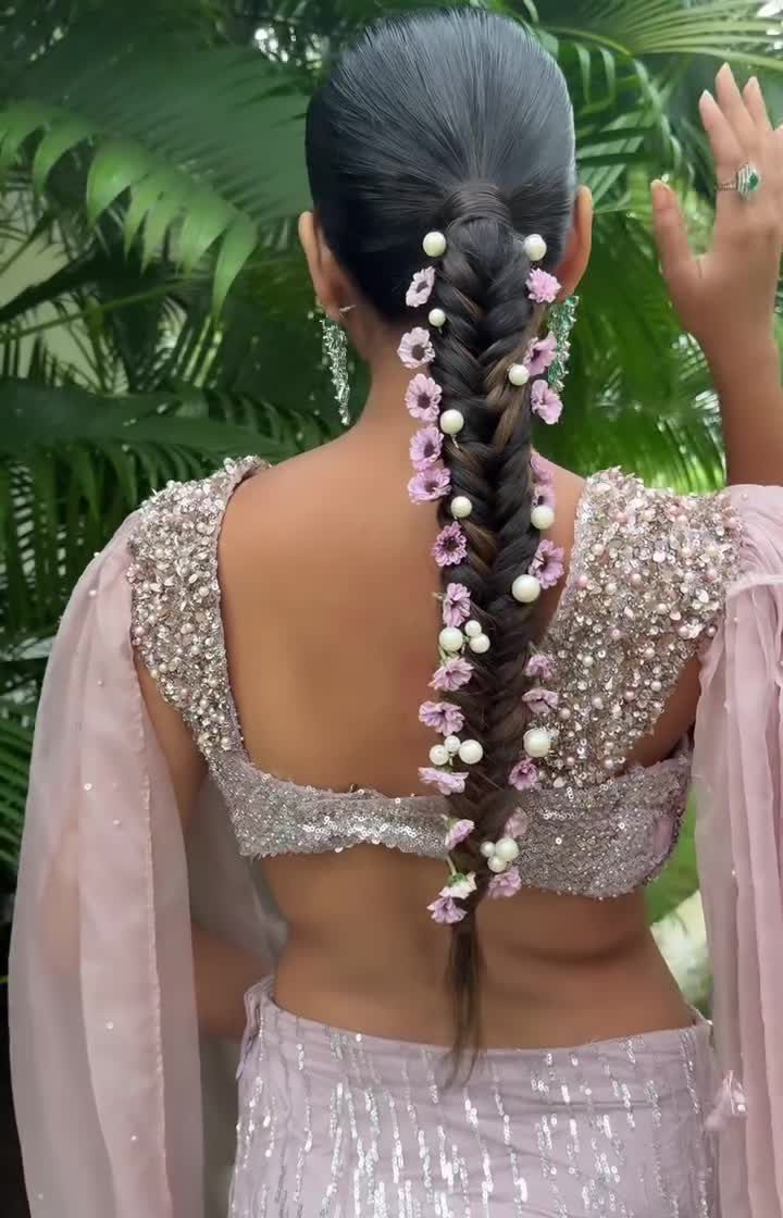 Braids are my jam, especially for South Indian weddings, lively Sangeet nights, or any event where you need a style that’s both stunning and dance-proof. I design everything from traditional long braids with fresh mogra to modern fishtail and bubble braids, and love to accessorize them with pearls, flowers, and unique clips.