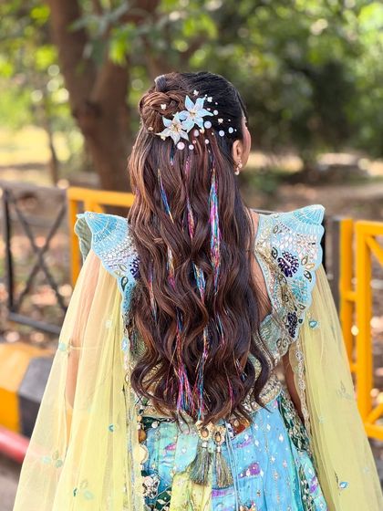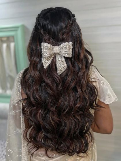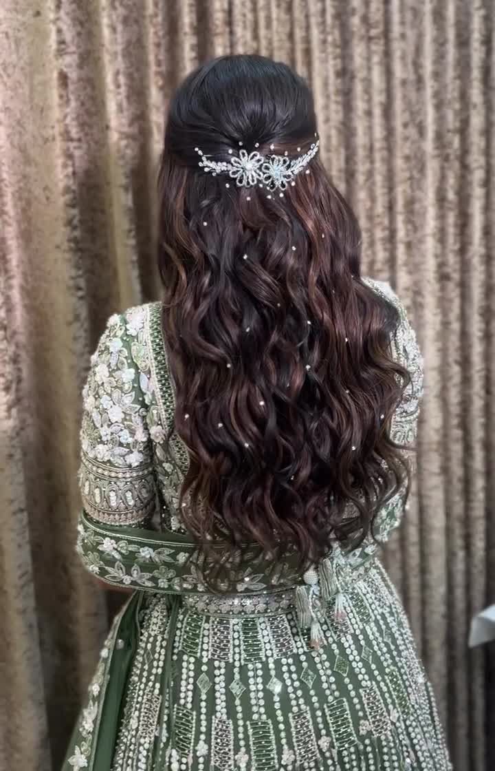Perfect for sangeet, engagement, or reception events, I love creating soft, romantic looks with open hair. Whether you want voluminous waves, defined curls, or a chic half-up style, I use techniques that ensure your hair has movement and lasts through all the dancing.