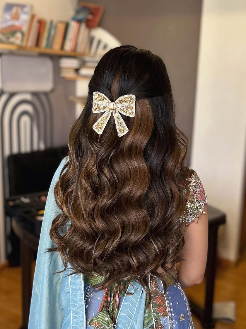 I love adding a unique touch to your hairstyle with the perfect accessories. From trendy oversized bows and celestial moon and star charms to colorful butterflies and thread work for a carnival vibe, these details can transform your look and show off your personality.