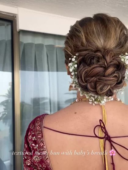 From playful bubble braids for a fun Mehendi to intricate, accessorized braids for a Sangeet, I design styles that are both beautiful and practical. These braids are perfect for keeping your hair managed while still making a statement, and I can incorporate flowers, pearls, or even colorful threads.