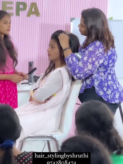 I train you in bridal and trending hairstyling with hands-on practice on real hair and models, plus saree draping, so you build actual skills for your portfolio.