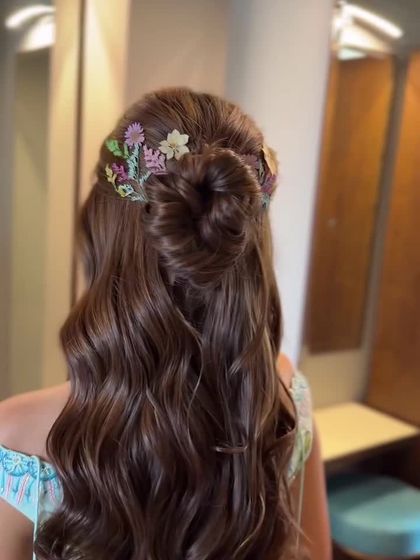 I style hair for events like sangeet, baby showers, and parties, using fresh flowers, accessories, and custom looks for you and your group, and I work with makeup artists to make sure everything matches.