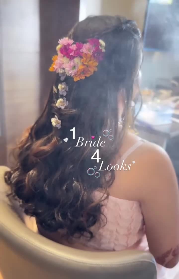 This shows how I work with a bride across all her wedding events to create a series of unique, beautiful, and cohesive looks. From a floral style for the welcome ceremony to a traditional look for the Pheras, I ensure every hairstyle fits the event and the bride's personality.