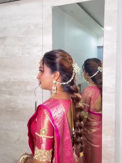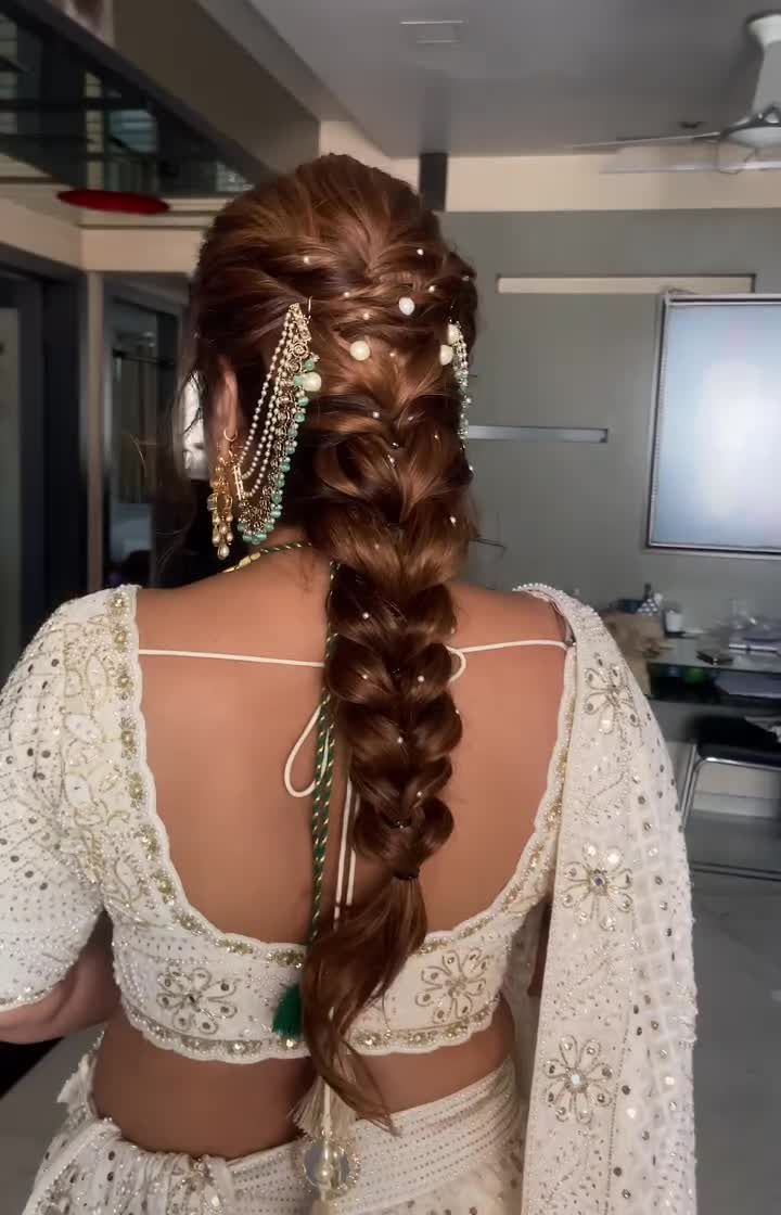 A ponytail is a stylish and modern choice for a Sangeet, Carnival, or Cocktail party. I create high, bouncy ponytails with glamorous waves or sleek, textured looks, often adding accessories like pearls or pins for a touch of elegance.