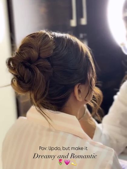 An updo is a classic choice for wedding functions, ensuring your hair stays perfectly in place. I specialize in creating both sleek, traditional buns and soft, textured updos, often incorporating fresh flowers like roses, baby's breath, or carnations to match your outfit.