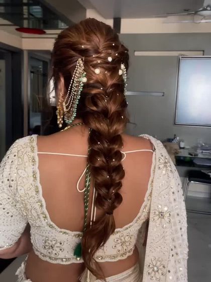 I love using accessories to create one-of-a-kind hairstyles. This collection features intricate braids and styles elevated with unique embellishments like traditional Gottapatti, modern hair charms, and other custom jewellery.