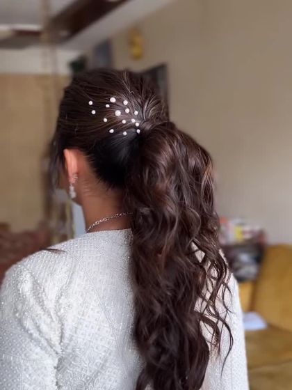 A ponytail can be anything from sleek and powerful to soft and romantic. I design ponytails for any event, including textured styles with pearls for a carnival or sangeet, and sharp, sleek looks for a modern cocktail party.