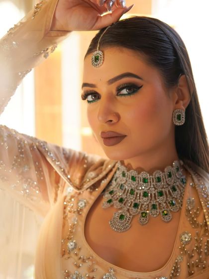 My signature Riwayat collection is for celebrations where you want to shine. I blend traditional aesthetics with modern techniques like contouring and highlighting to create looks for festivals, parties, and sangeets, ranging from bold, dramatic eyes to soft, radiant glam.