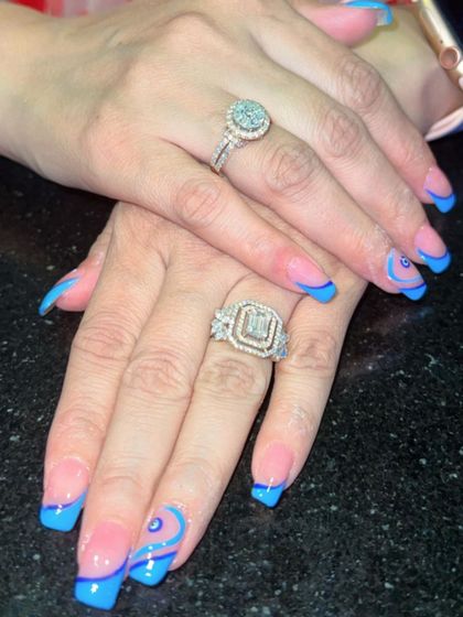 We take the classic French manicure beyond the simple white tip. See how we use vibrant colors, glitter accents, and playful designs like evil eyes and geometric patterns to create a fresh, contemporary look.