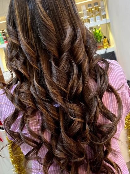 This is a gallery of finished styles, showcasing the beautiful results of my coloring and styling work. Here you can find inspiration for your next look, from rich chocolate waves to sun-kissed honey blonde curls.