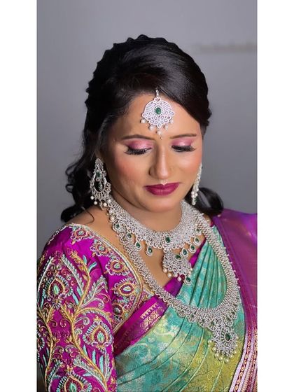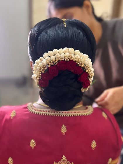 I'm a Bangalore-based bridal hairstylist and saree draping artist specializing in South Indian and modern looks. From traditional muhurtham braids to elegant updos, I work to create your complete wedding day look.