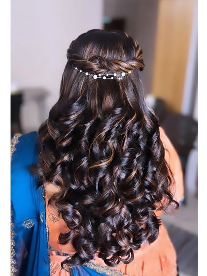 If you’re confused between a braid and an updo, we can mix it up - textured, pulled-apart braids with modern pins or flowers, perfect for engagement or mehendi.