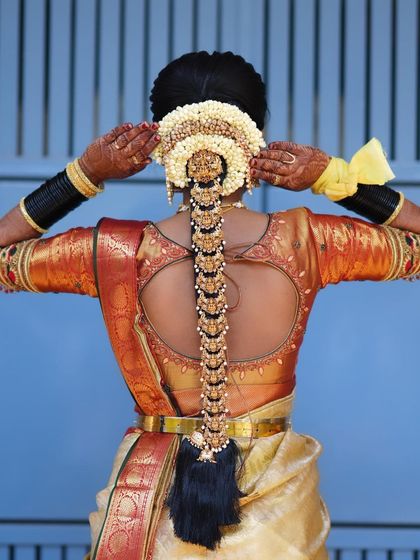 I’m all about creating hairstyles that actually feel like you, whether it’s a grand South Indian braid or a modern messy bun for your reception. I get how important it is to find that just-right look for your big day - sometimes it’s the little things, like the scent of malli poo (jasmine), or the shine of gold-plated braid jewellery, that make a style feel special.