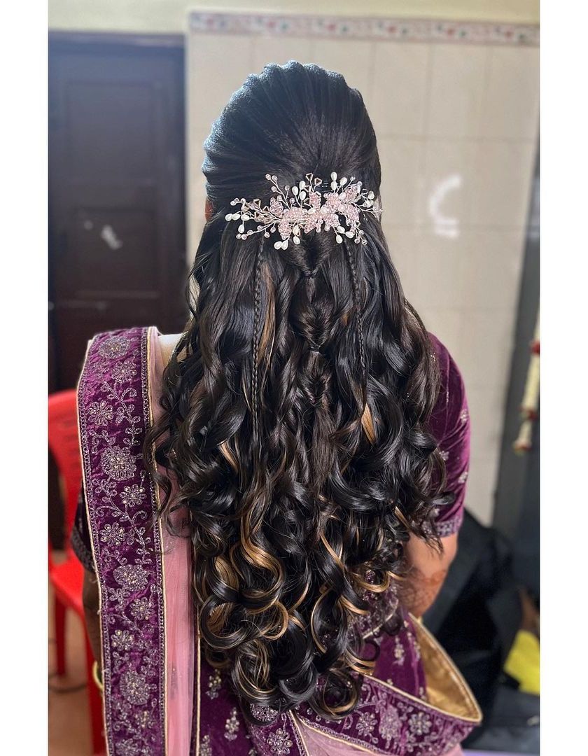 For your reception, sangeet, or engagement, we can create a more modern and relaxed look. I specialize in soft curls, glamorous waves, and elegant half-updos, finished with stylish accessories like crystal pins, bows, or fresh flowers that match your outfit.