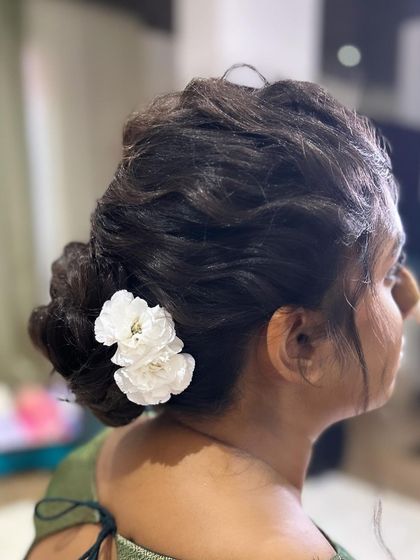 Traditional & Modern Looks - From traditional South Indian bridal braid with jade billai to messy bun bridal hair, I can do both.