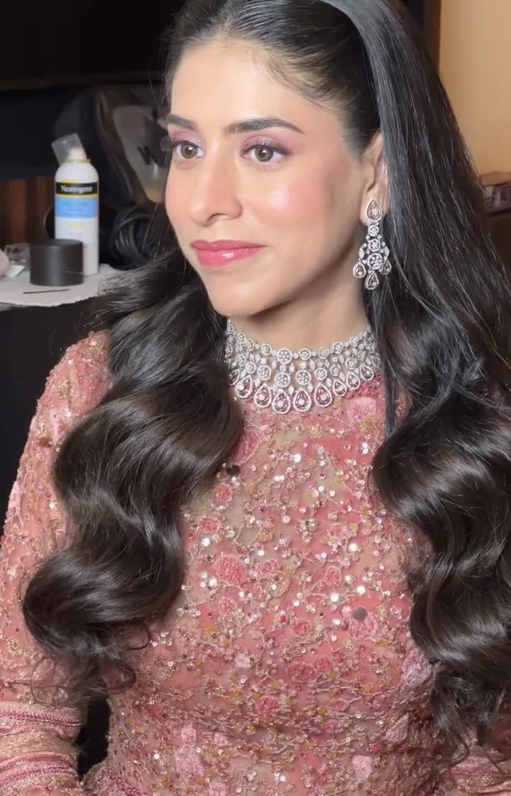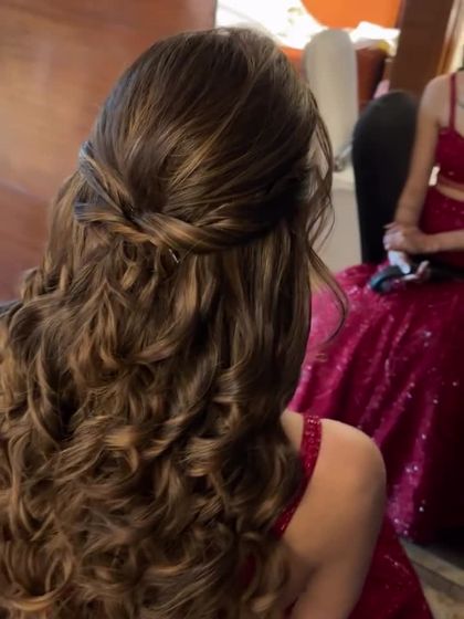 For events like the Sangeet, Engagement, or Reception, I design glamorous styles with the hair worn down or half-up. These looks focus on creating beautiful volume, soft waves, or defined curls, often finished with delicate pins or twists for an effortlessly chic appearance.