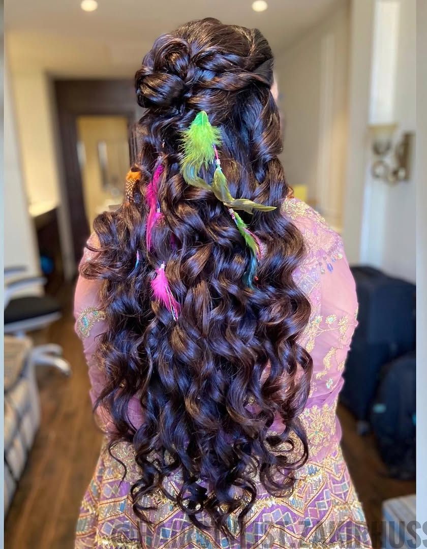 I love creating fun and bohemian hairstyles for Mehendi and Haldi ceremonies. These styles often incorporate playful elements like colorful threads, feathers, and fresh, vibrant flowers to match the festive and joyful atmosphere of these events.