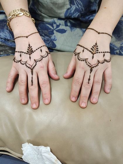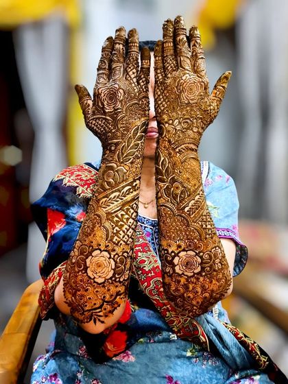 My specialty is creating dense, detailed mehndi that covers the hands and arms, perfect for brides or for making a statement at any grand celebration. I work with a variety of motifs including florals, paisleys, and geometric patterns to create a unique masterpiece for you.