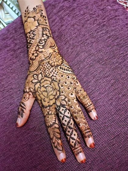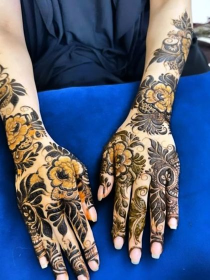 Available for home service, I create designs that typically take less time than bridal mehndi while maintaining artistic quality and attention to detail.