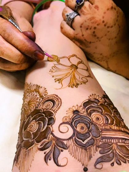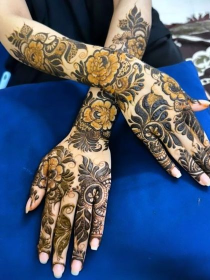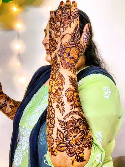 I specialize in creating half-hand Indian designs featuring traditional patterns, floral motifs, and geometric elements. My non-bridal mehndi service focuses on detailed line work and symmetrical designs that result in rich, dark stains.
