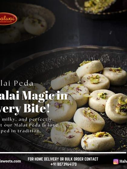 Explore our signature sweets, where every piece is a taste of tradition. We use pure ingredients and time-honored recipes to craft classics like Kaju Katli, Malai Peda, and Motipak, ensuring an authentic and memorable flavor.