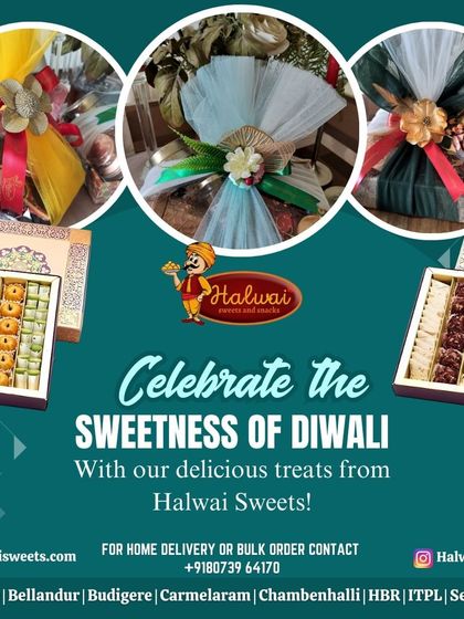 Light up your Diwali with our special gift boxes, filled with traditional sweets, savory snacks, and festive joy. Our beautifully packaged hampers are the perfect way to share the sweetness of the festival with family, friends, and colleagues.