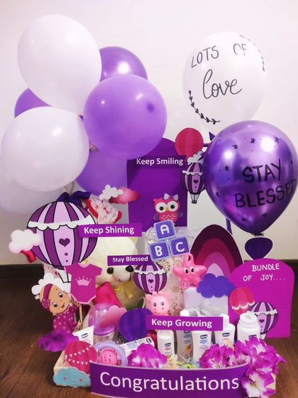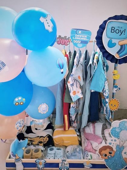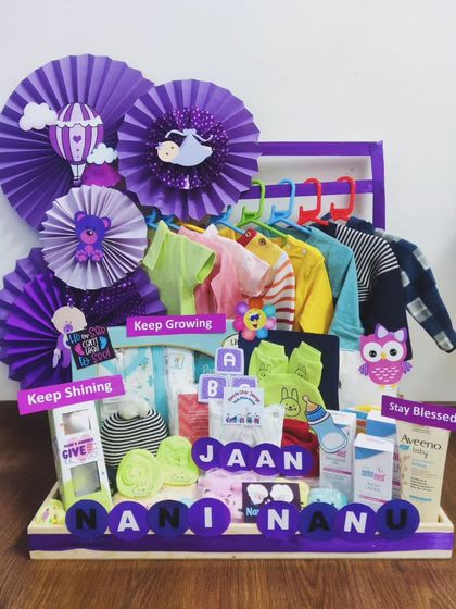 This is my specialty for making a big statement at naming ceremonies or welcome parties. I arrange all the gifts, clothes, and essentials on themed racks and stands, creating a beautiful display that looks fantastic in photos and at your event.