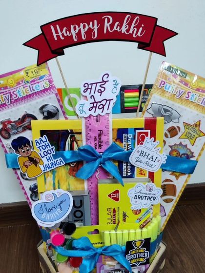 I design exciting gift hampers for Children's Day and Rakhi that kids will love. These can be filled with their favorite snacks and treats or packed with creative stationery and toys for hours of fun.